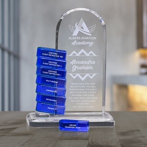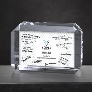 The company has introduced “80 new ways to wow” with the addition of designs made of cultured stone, wood, and acrylic. These substrates were carefully curated over the past year to complement Crystal D’s timeless crystal designs—providing customers with more options than ever to meaningfully recognize recipients.
